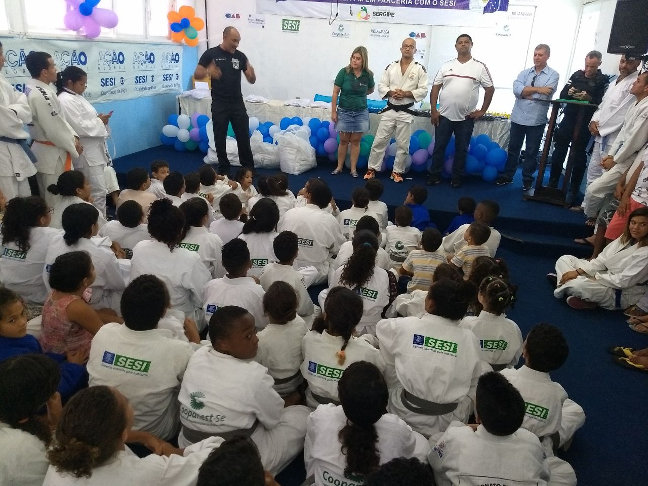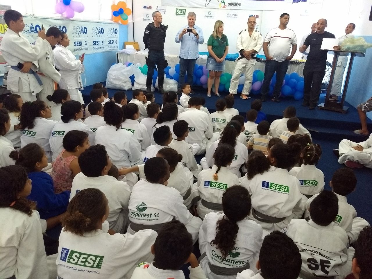 A cooperativa dos Anestesiologistas de Sergipe (Coopanest-SE) realizou neste sábado, 16, a doação de mais 40 kimonos ao projeto “A escola vai ao Batalhão de Choque”, que insere crianças e jovens carentes na prática do Judô. Essa é a segunda vez que o projeto recebe da Coopanest a doação desse material esportivo. A cooperativa já havia doado 35 kimonos, possibilitando a inserção de novos alunos na prática do esporte.