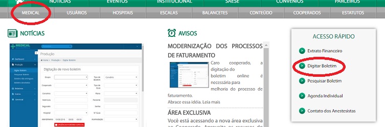 Na imagem abaixo ilustramos as formas de acessar a digitação de boletim online: