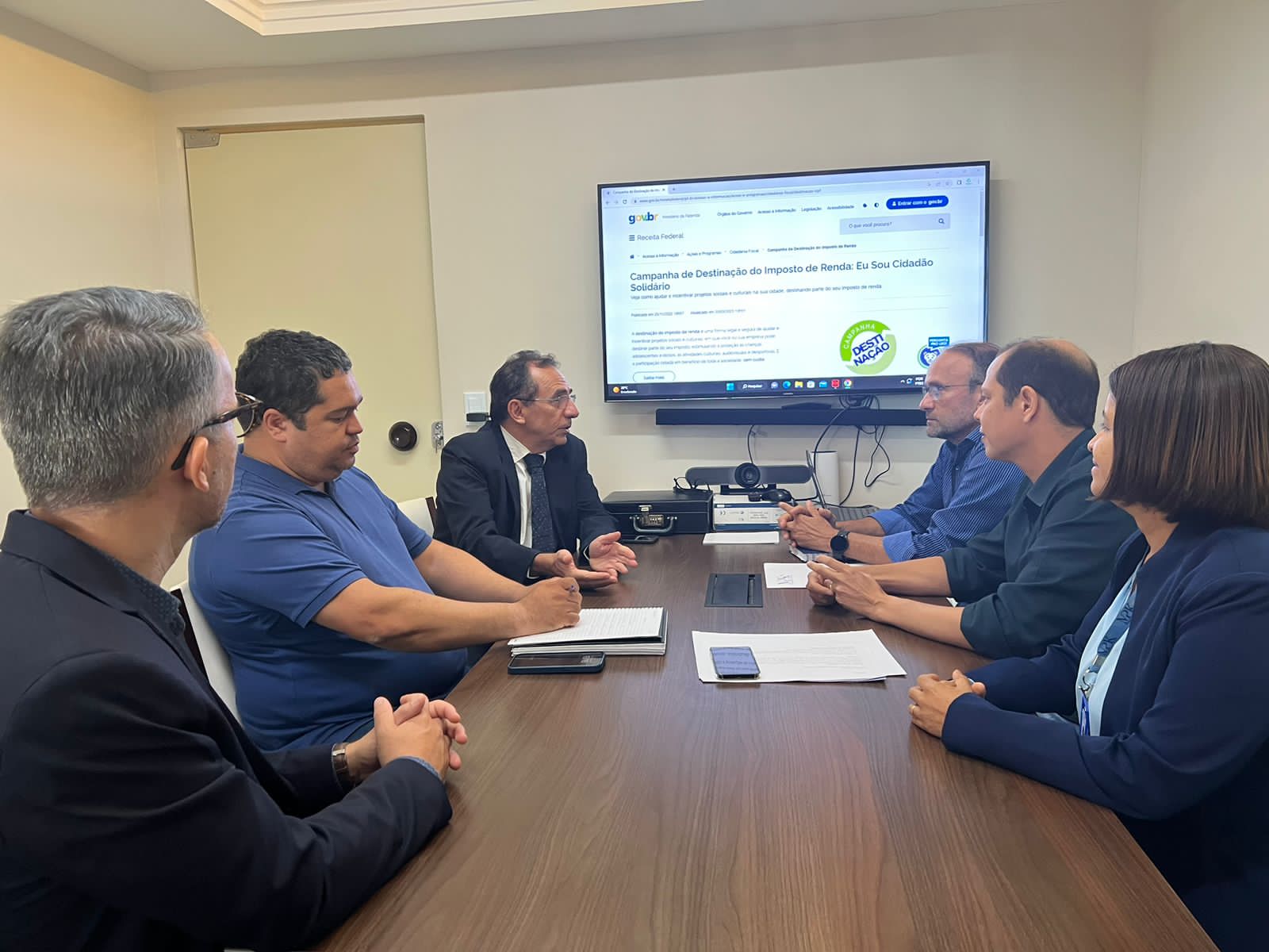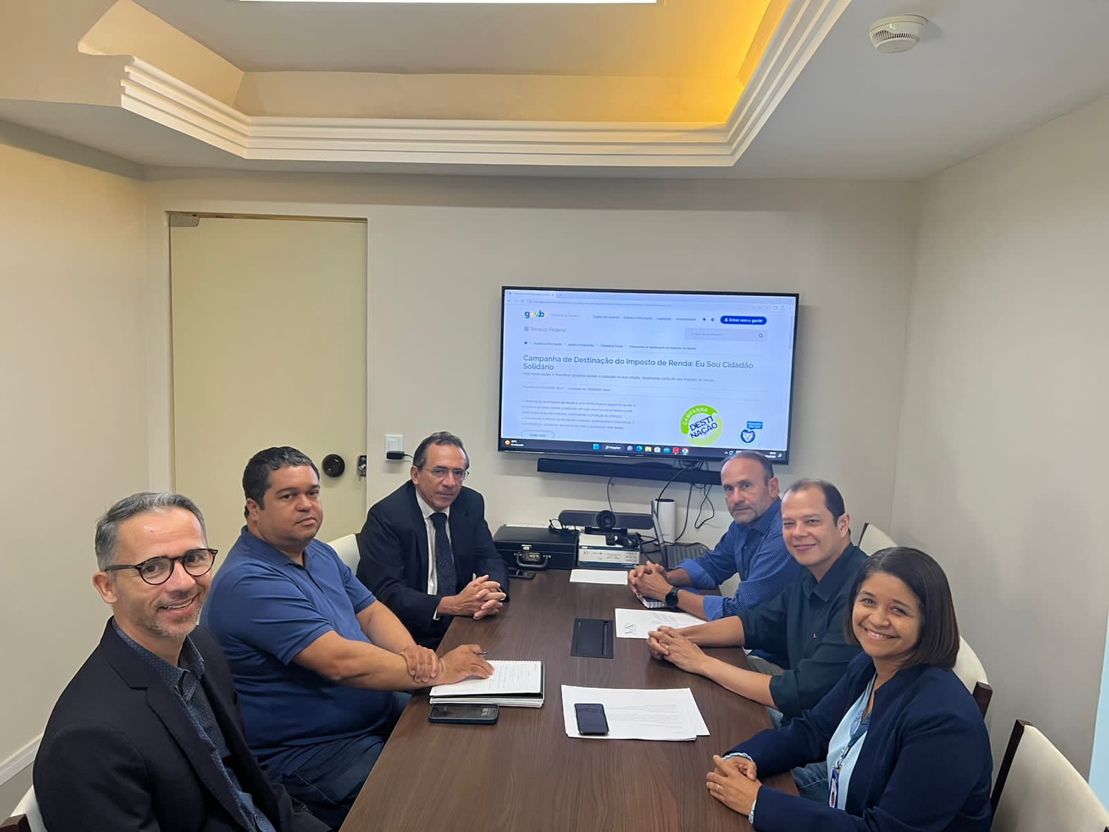 Na tarde desta quarta-feira (12), o presidente da Coopanest-SE, Áley Newton, juntamente com o vice-presidente Eduardo de Assis, do vice-diretor de Gestão, Tecnologia e Inovação, Cárcio Sobral, e de funcionários da cooperativa, esteve reunido com o delegado da Receita Federal, Nilson Lima, para saber como funciona o projeto e formalizar a adesão à Campanha.