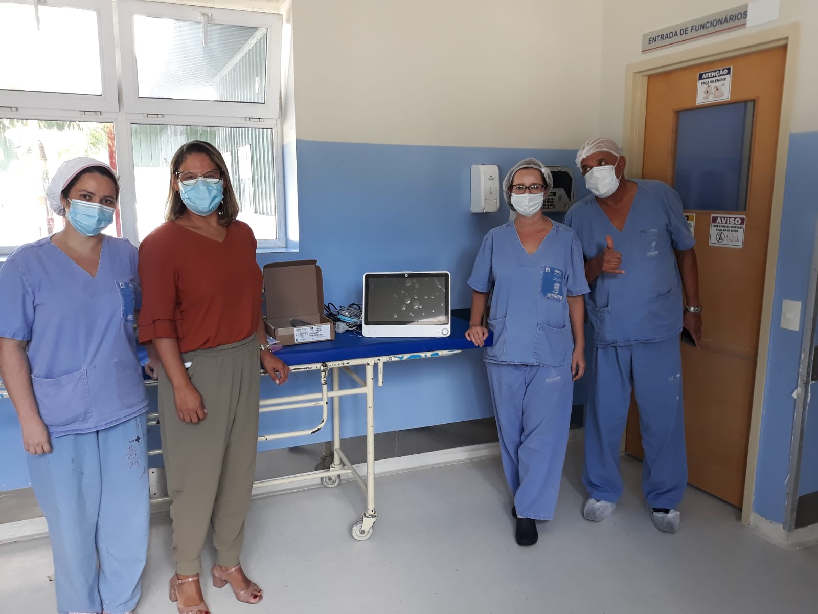 A Cooperativa dos Anestesiologistas de Sergipe (Coopanest-SE) fez a doação de um Monitor Multiparâmetros para a Maternidade Nossa Senhora de Lourdes (MNSL). O equipamento é utilizado para cirurgias em recém-nascidos, trazendo mais segurança e qualidade na anestesia. A entrega foi realizada na quinta-feira,22, pelo presidente da Coopanest, Roberto Santos Menezes, e pela anestesista Marília Barbosa Lenik, que foram recepcionados pela superintendente da maternidade, Lourivânia Prado, e a gerente do Centro Cirúrgico, Amanda Nabuco.